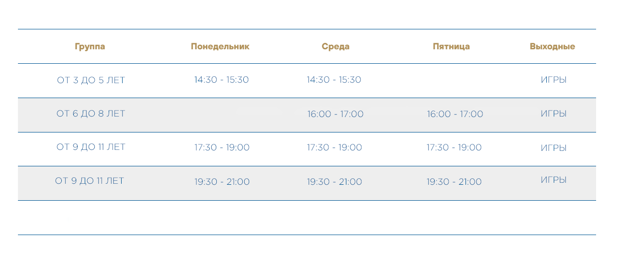От 9 до 11 лет ;17:30 - 19:00;17:30 - 19:00;17:30-19:00;Игры